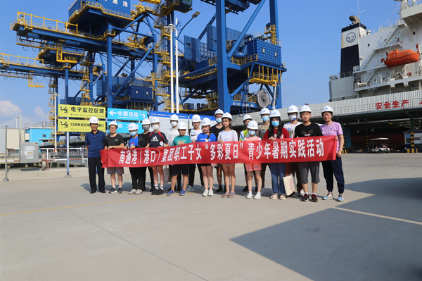 在橫港沙基地碼頭前沿現場,孩子們第一次與萬噸巨輪零距離接觸、看到嶄新的現代化港機設備時,一個個興奮不已。